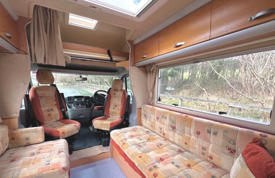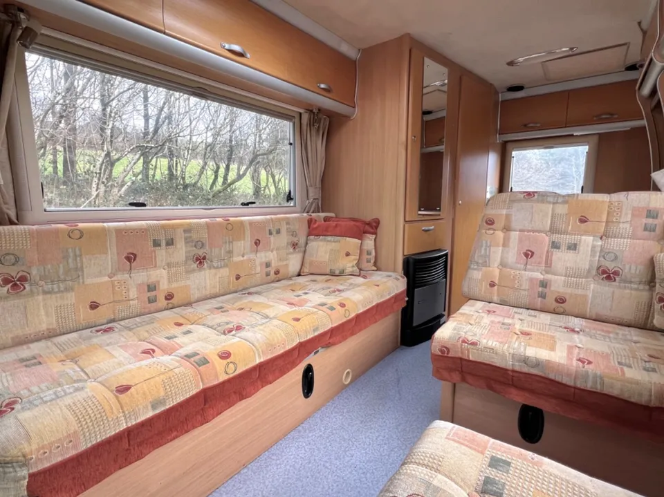 Swivel the cab seats and position the dining table stored in the wardrobe to create a versatile lounge/diner where six people can relax in comfort with superb panoramic views through the windscreen and two windows.