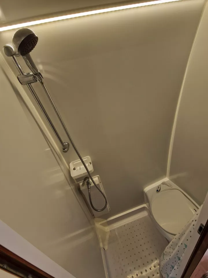 Rear roof light over bed area, roof vent over kitchen, 12V vent over toilet/shower.