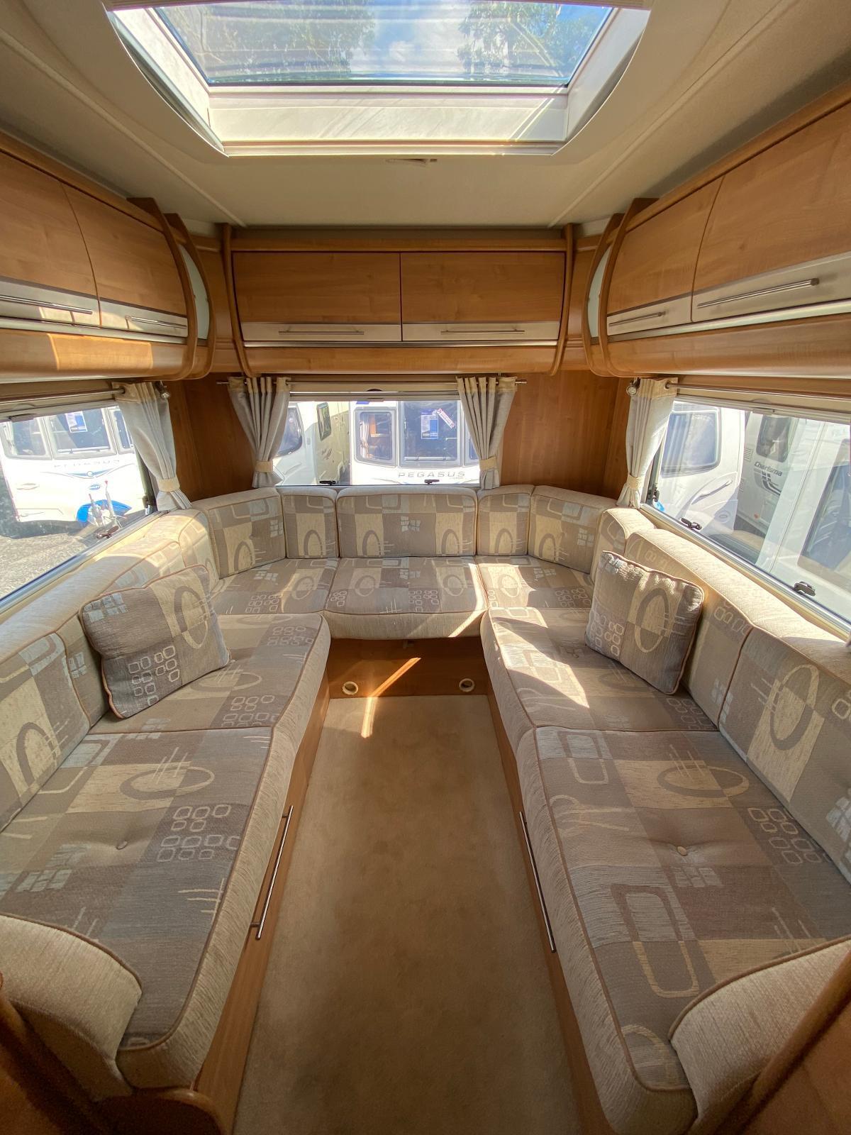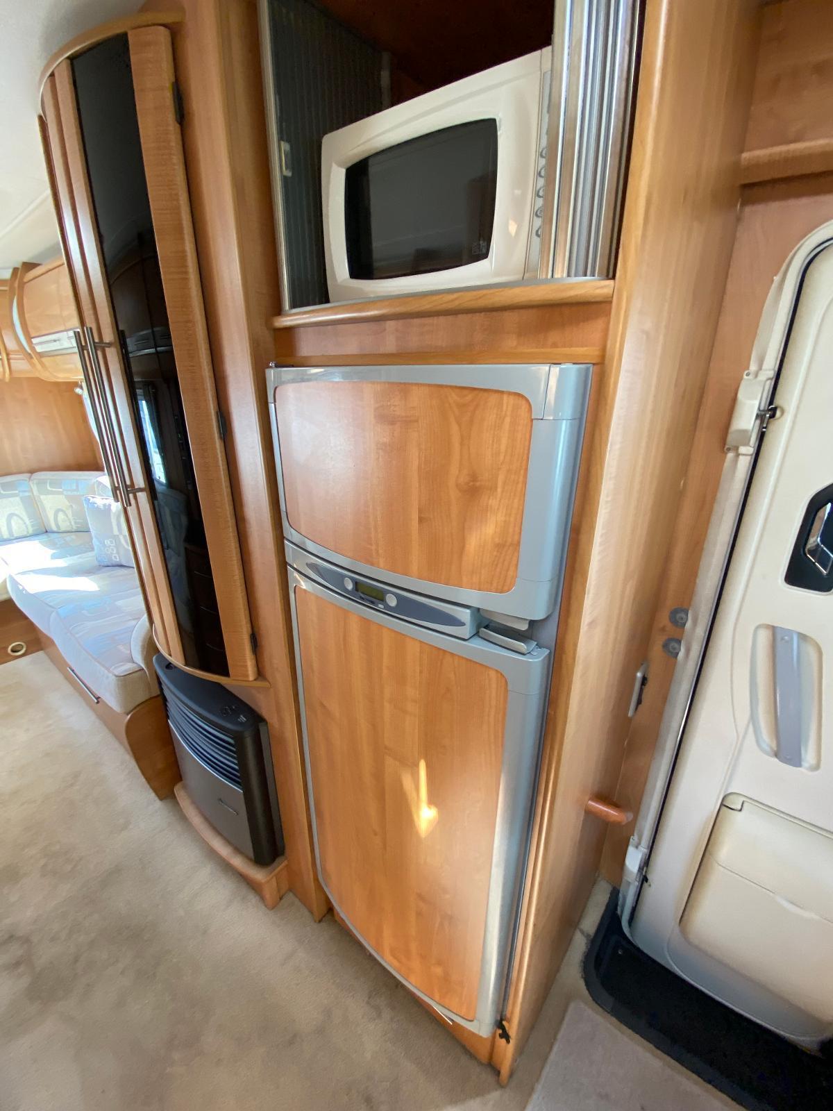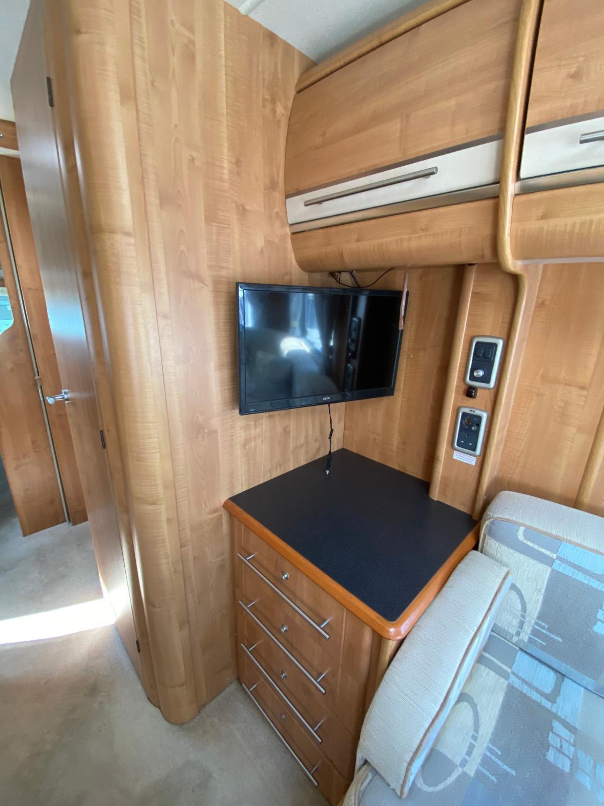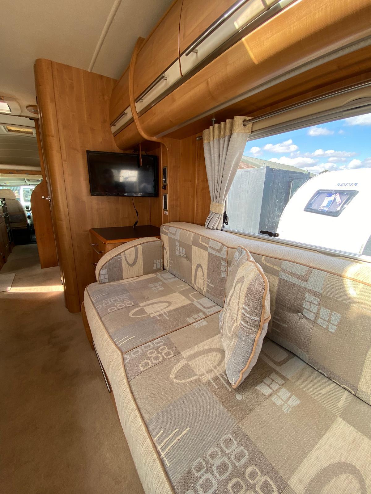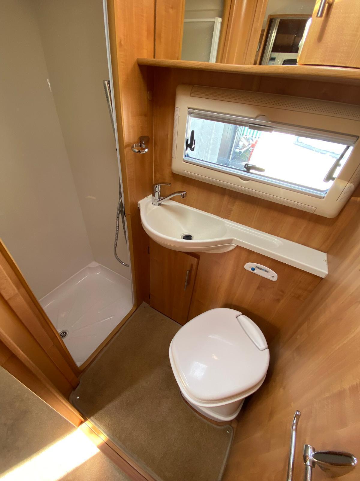 This is a 6 berth motorhome with U-shaped seating, side dinette and over-cab bed. The kitchen has a hob with 3 gas rings and 1 electric plate, sink, oven, grill, microwave and large fridge freezer. Opposite the kitchen is the side dinette which can be converted into a double bed. The rear of the motorhome is the U-shaped lounge which can also convert into a double bed. The central washroom has a cassette style toilet, hand wash basin and shower. This motorhome has blown air heating and plenty of storage for all your needs.