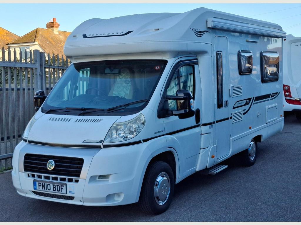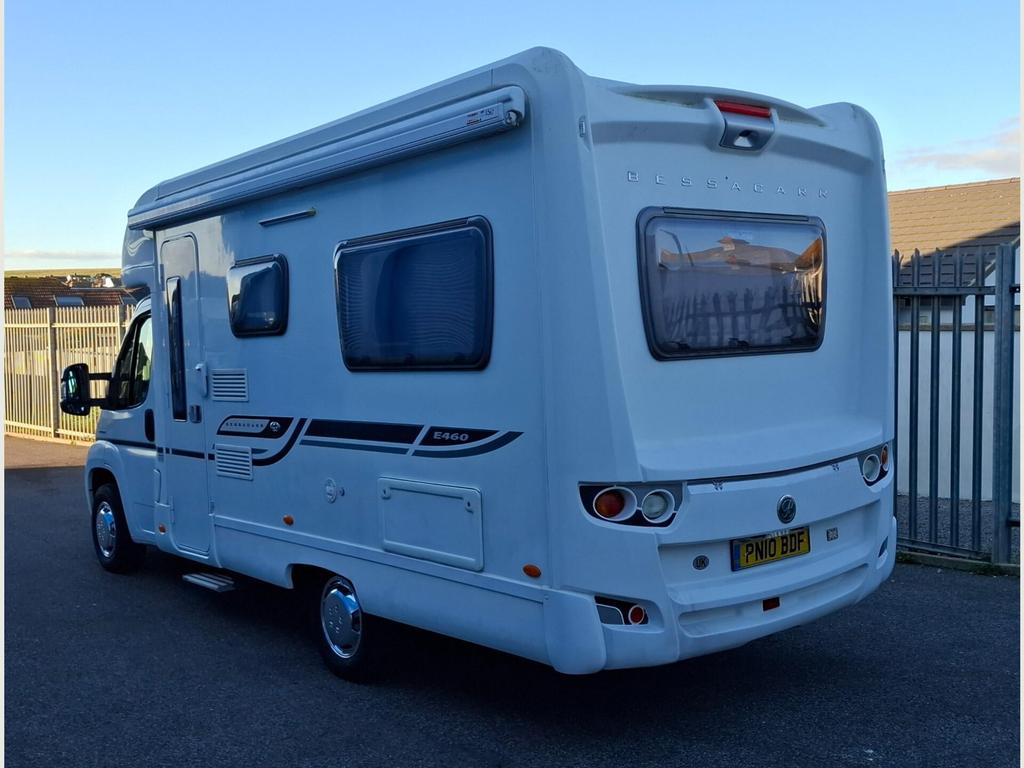 A 2010 Fiat based Bessacarr E460 two berth coachbuilt motorhome with rear U shaped lounge. Under 6.4 meters and 3500KG with a payload of 620KG. A manual with a 2.2 litre 100 multijet engine TD. This lovely motorcaravan gives you a spacious area with a rear U shaped lounge (that converts to a double bed) and great viewing area with lots of light from the rear windows and roof lights. Given its length, payload and weight, it’s a wonderful van for two for travelling. Other features include: TV aerial, awning, reversing camera, Fiamma Hab door lock and more. As with our other used vehicles, this will come with: MOT, habitation service, engine service,