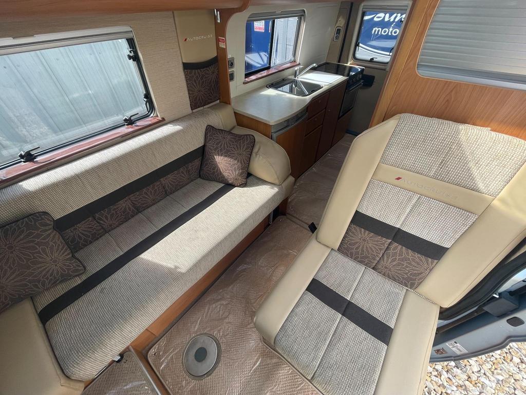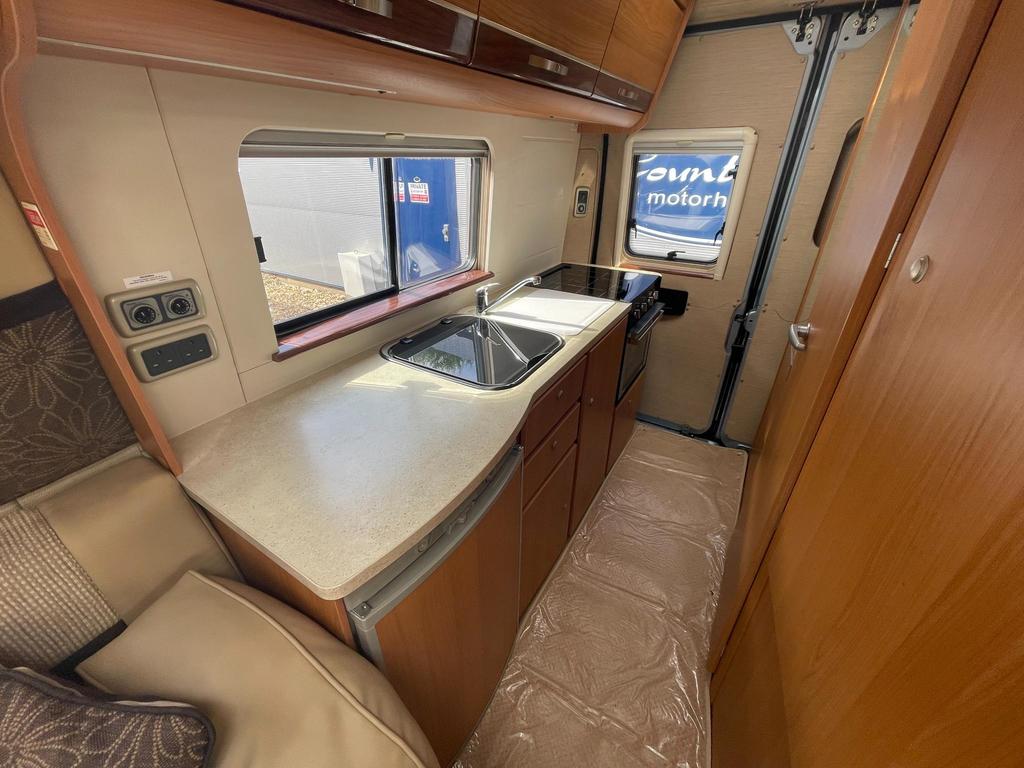 FRONT LOUNGE, VAN CONVERSION; Light and airy open-plan living area. The front lounge consists of a side-facing settee on one side and a forward facing travelling seat opposite that converts to either a double bed or two single beds. Wash/shower room featuring cassette loo and hand basin. Kitchen includes gas hob/cooker/grill, sink with hot & cold water taps, 3-way powered fridge with freezer compartment. Overhead lockers throughout. Nearside sliding habitation door ensures easy access together with opening rear doors. Gas heating and gas/electirc hot water.