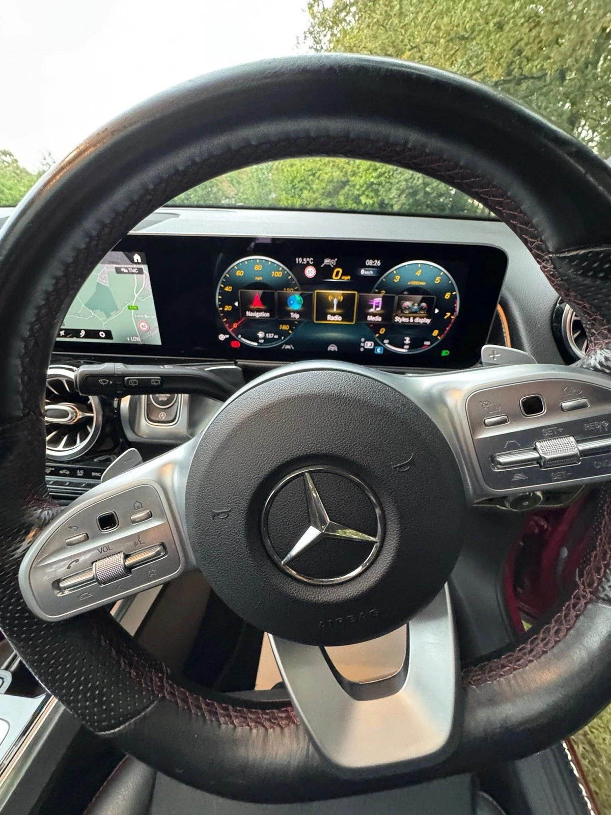 The 2020 Mercedes-Benz GLB AMG Line Premium Plus is a stylish, spacious, and high-performance 7-seater SUV, ideal for families or anyone looking for a premium vehicle with comfort and versatility. Its striking red exterior and grey leather interior complement a modern, sophisticated design.